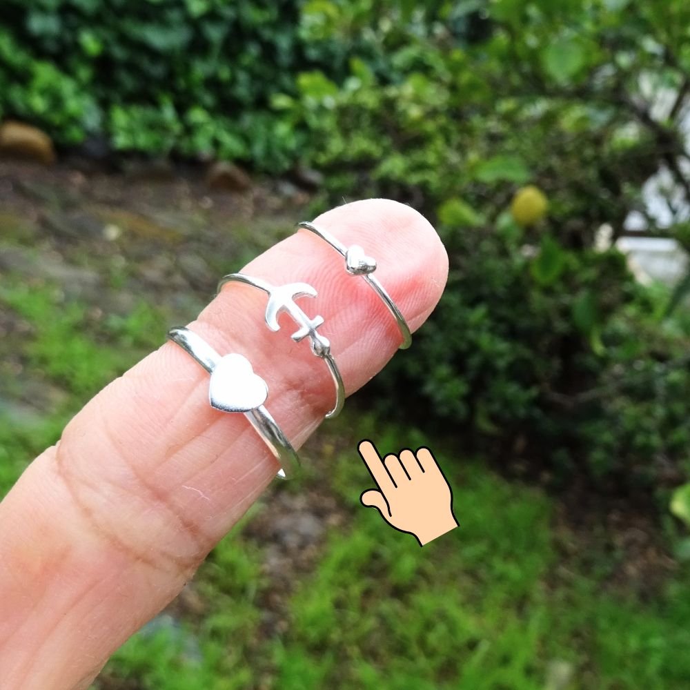 Anillo de plata formado por una alianza fina con un ancla tumbada.