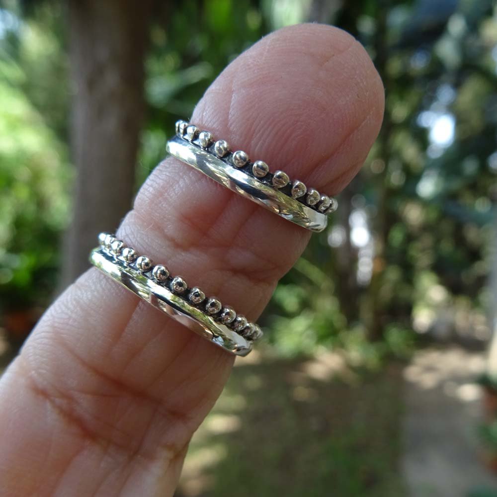 Anillo alianza con una fila de bolitas en lado.