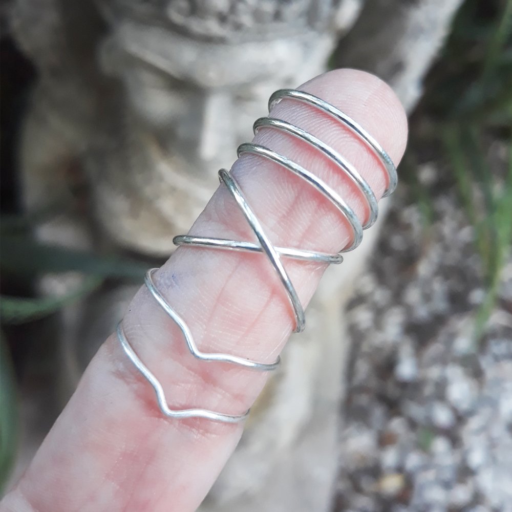 Anillo formado por un hilo de plata que se cruza formando una cruz.