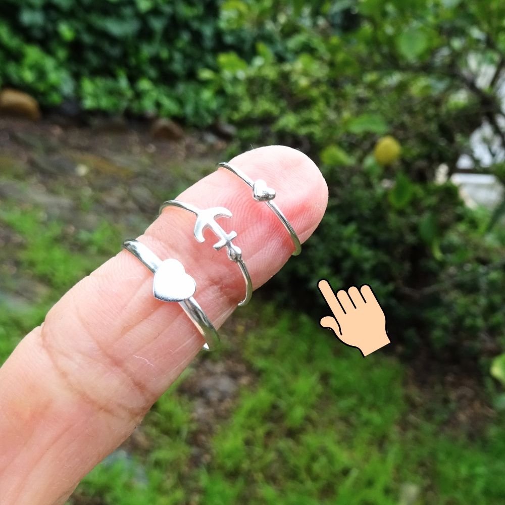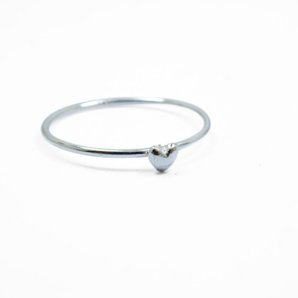 Anillo de plata formado por una alianza fina con un corazón pequeño.