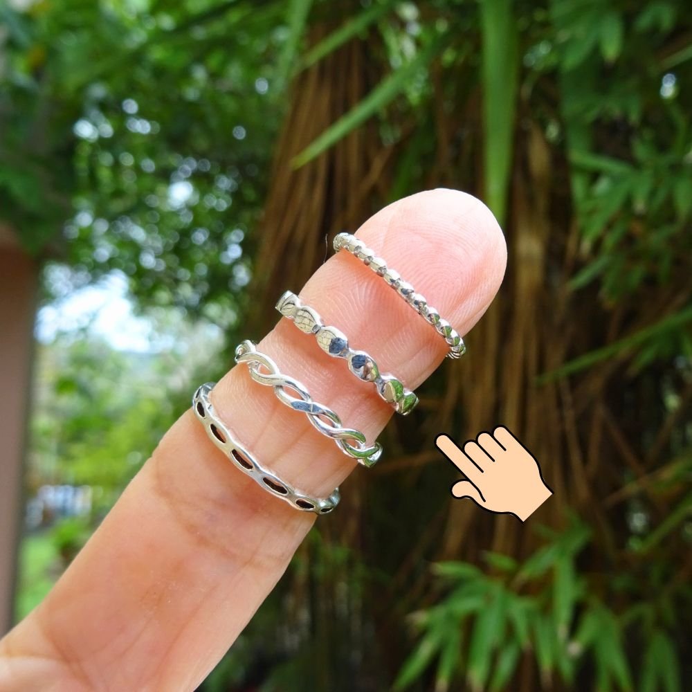 Anillo de plata formado por círculos en fila.