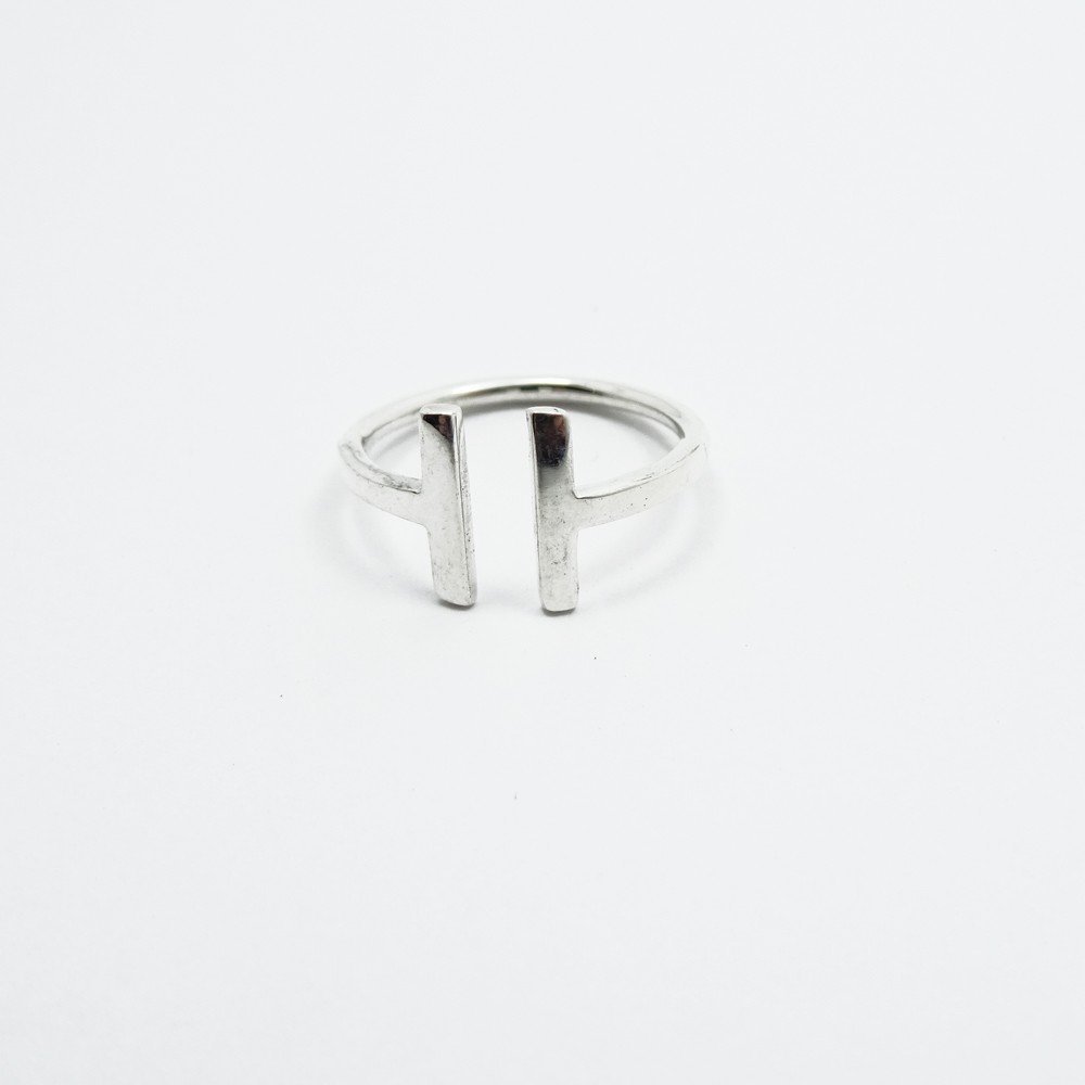 Anillo liso abierto que termina en dos barras opuestas .