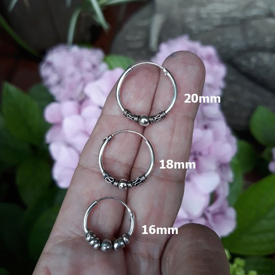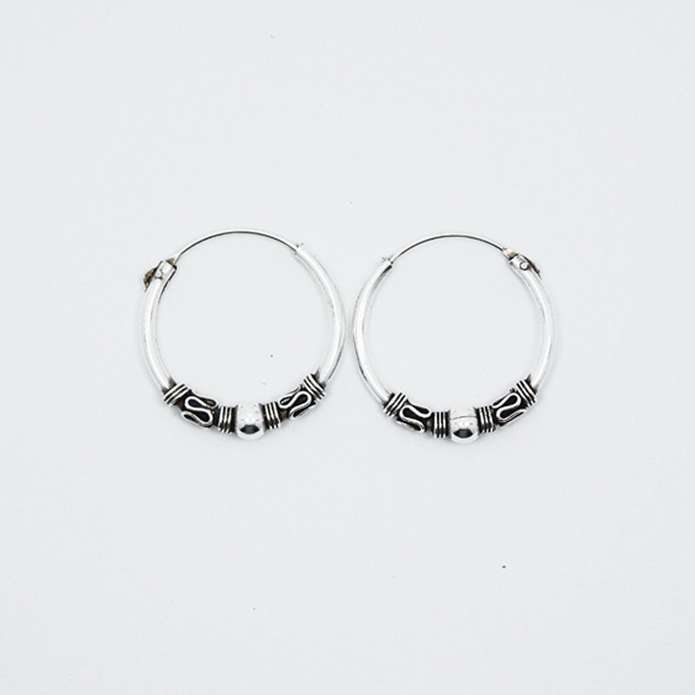 Aro con el característico diseño balinés con bola central e hilo enrollado a ambos lados.