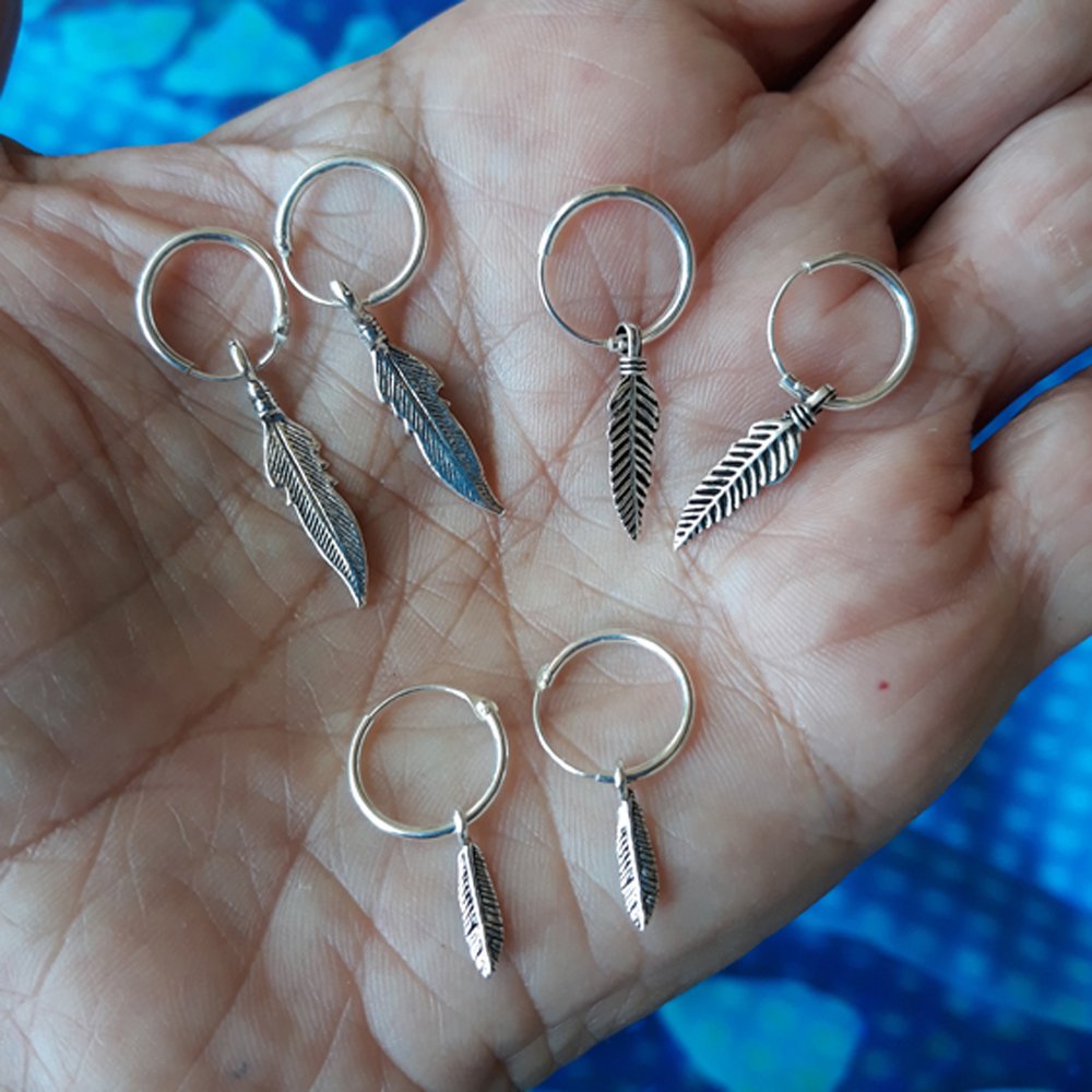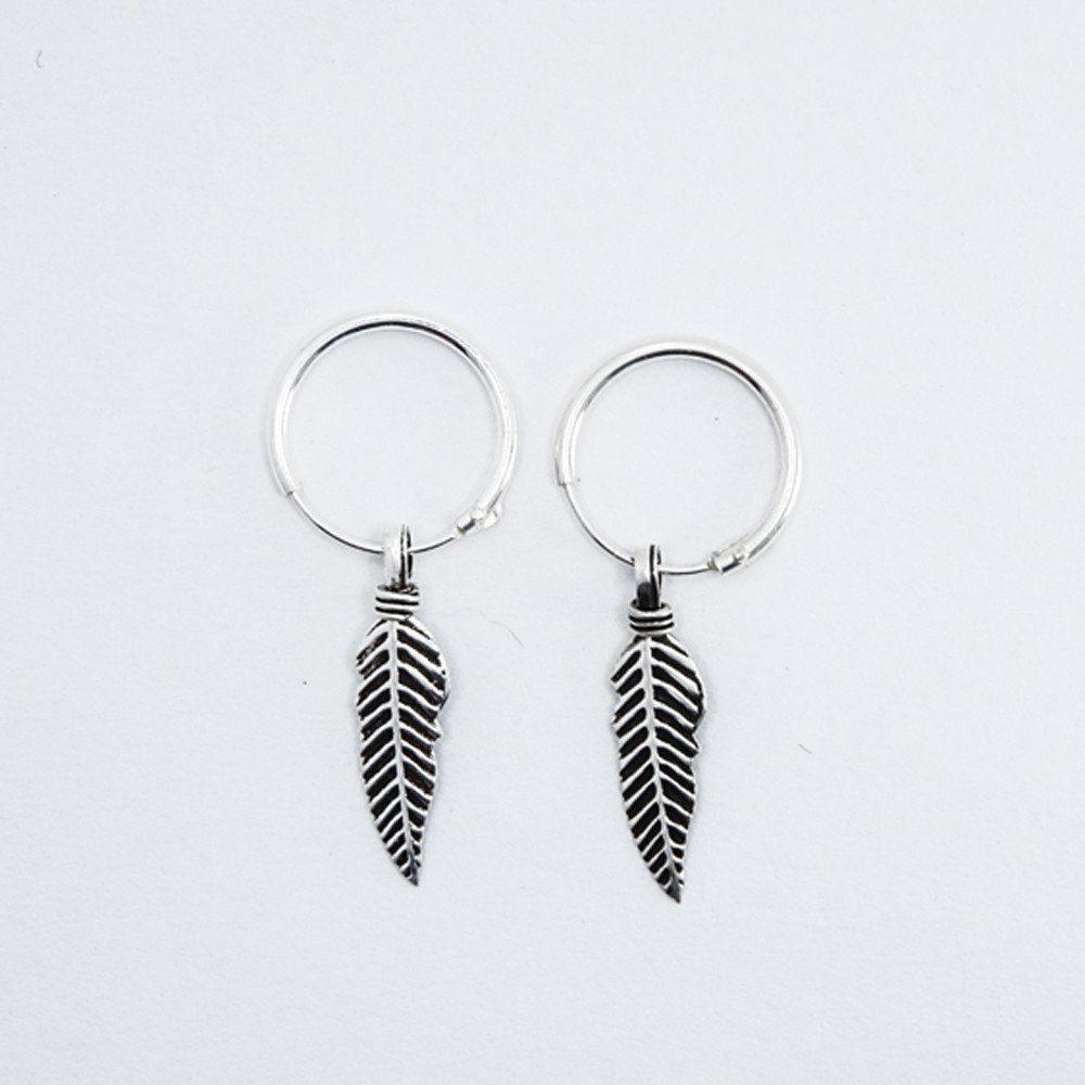 Pluma de plata de 15mm de largo montada en un aro de 12mm de diámetro.