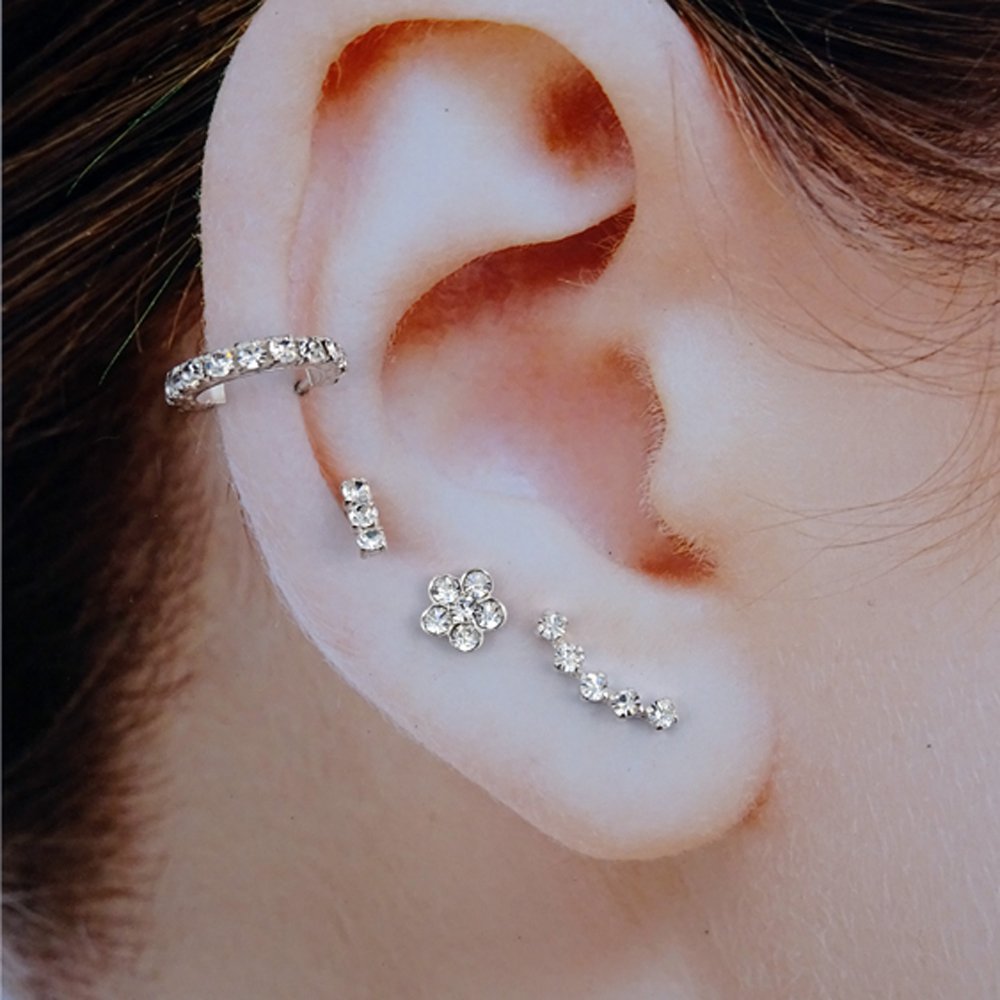 Lleva 12 zirconitas enzarzadas en un aro abierto.