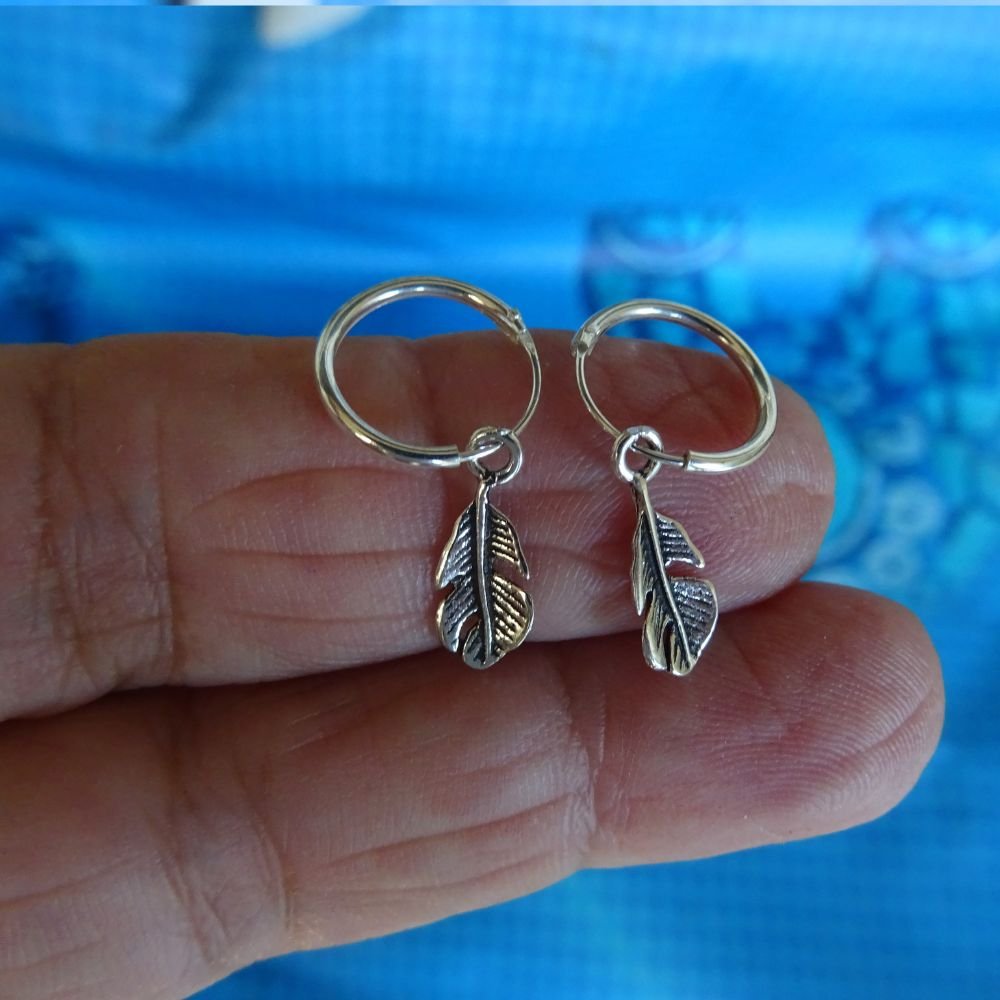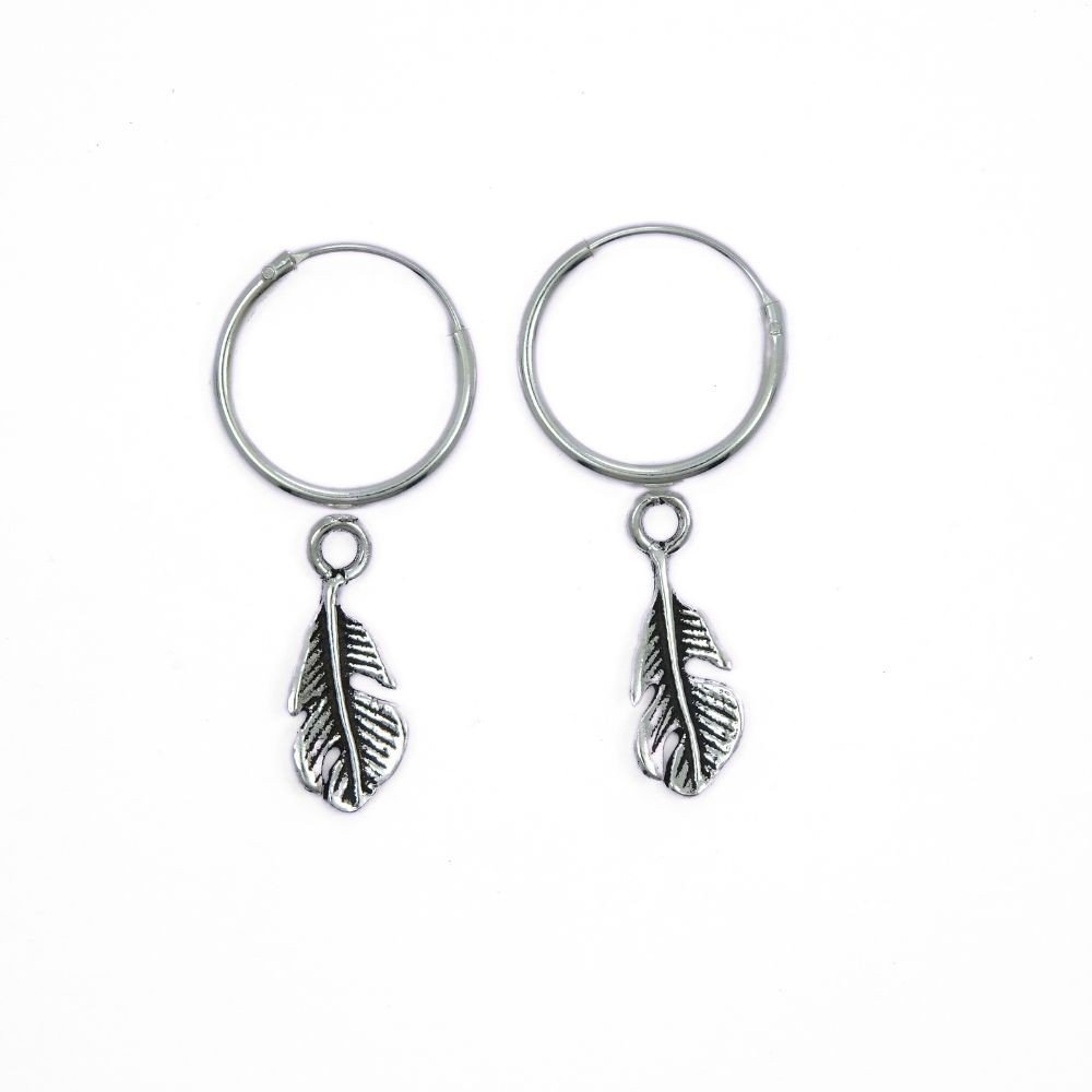 Pluma de plata montada en un aro de 12mm de diámetro.