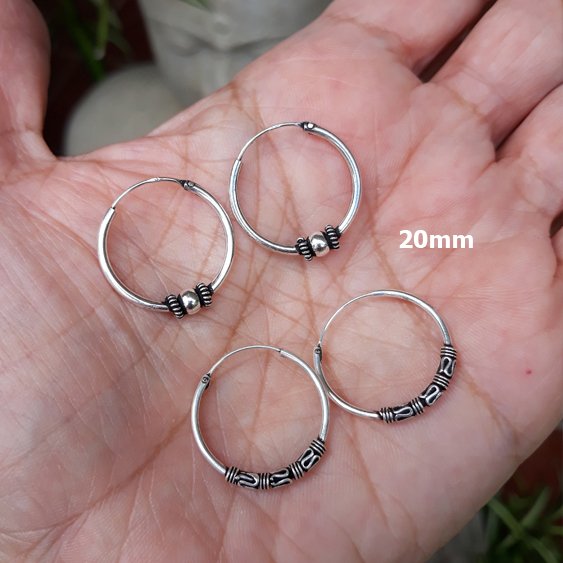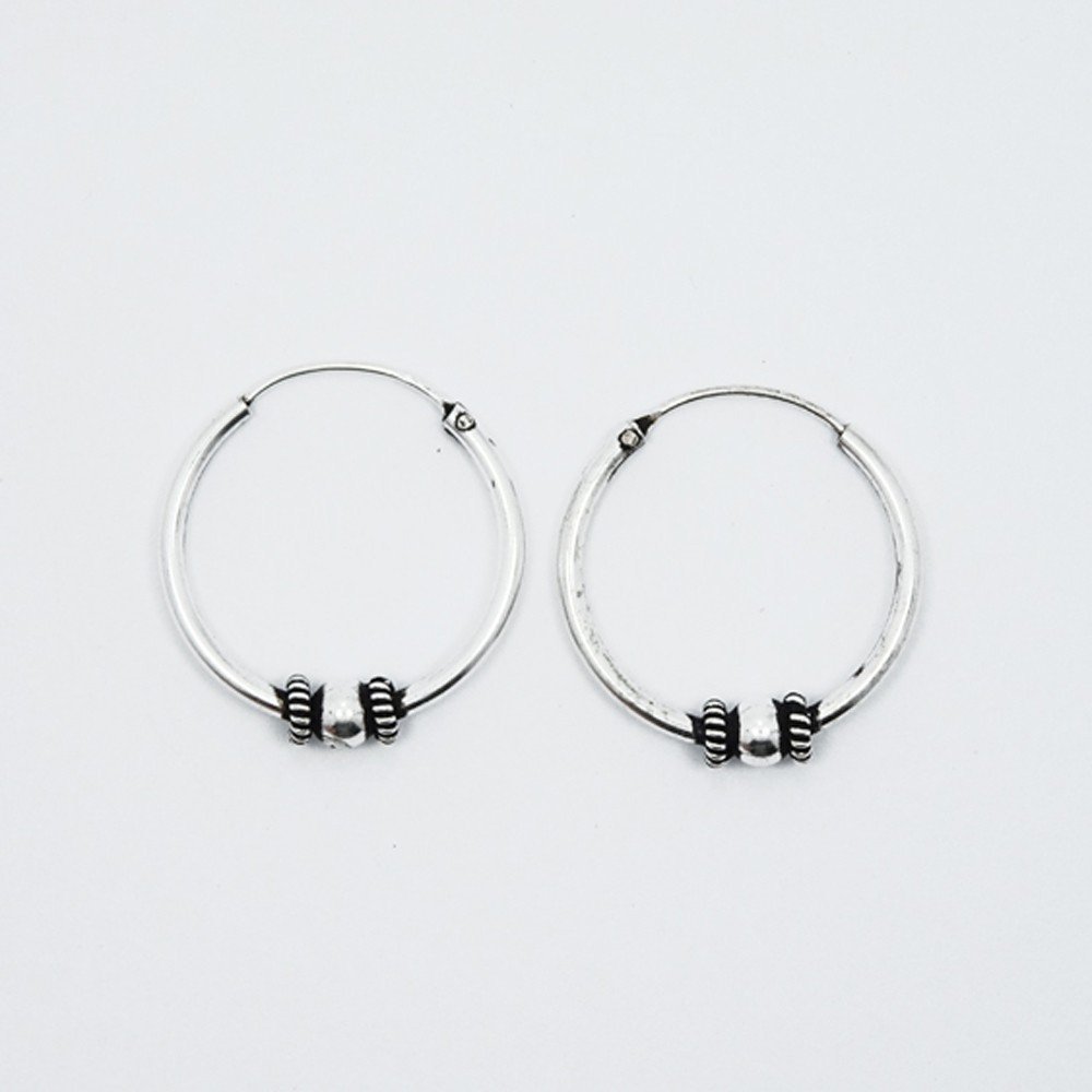 Sencillo aro Bali con una bola lisa central y dos labradas a los lados.