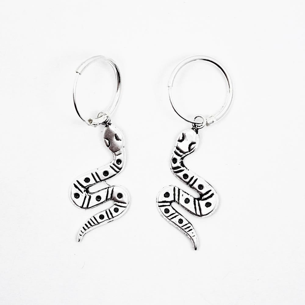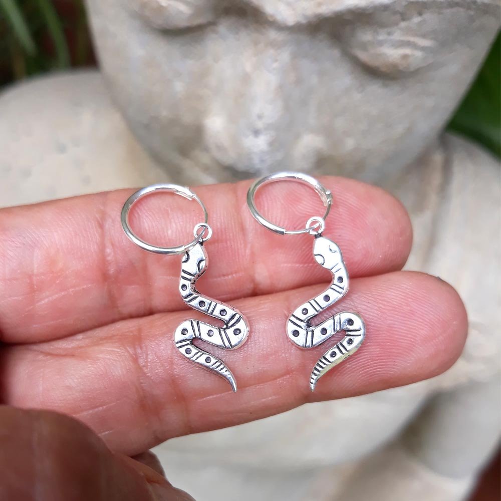 Serpiente labrada de plata de 21mm de largo montado en un aro de 12mm de diámetro.