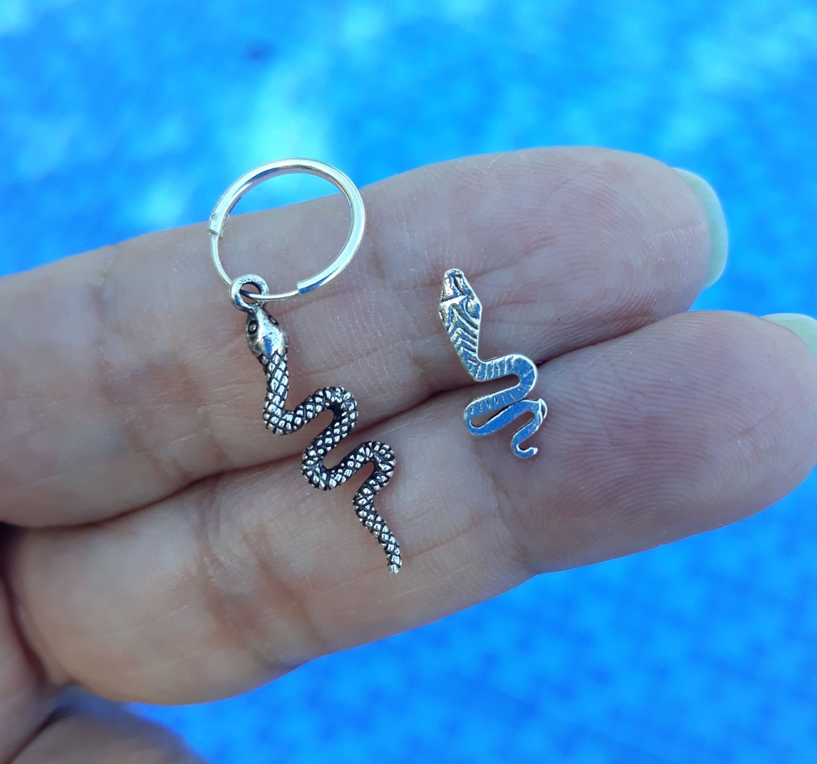 Serpiente de plata con relieve de 22mm de largo montado en un aro de 12mm de diámetro.