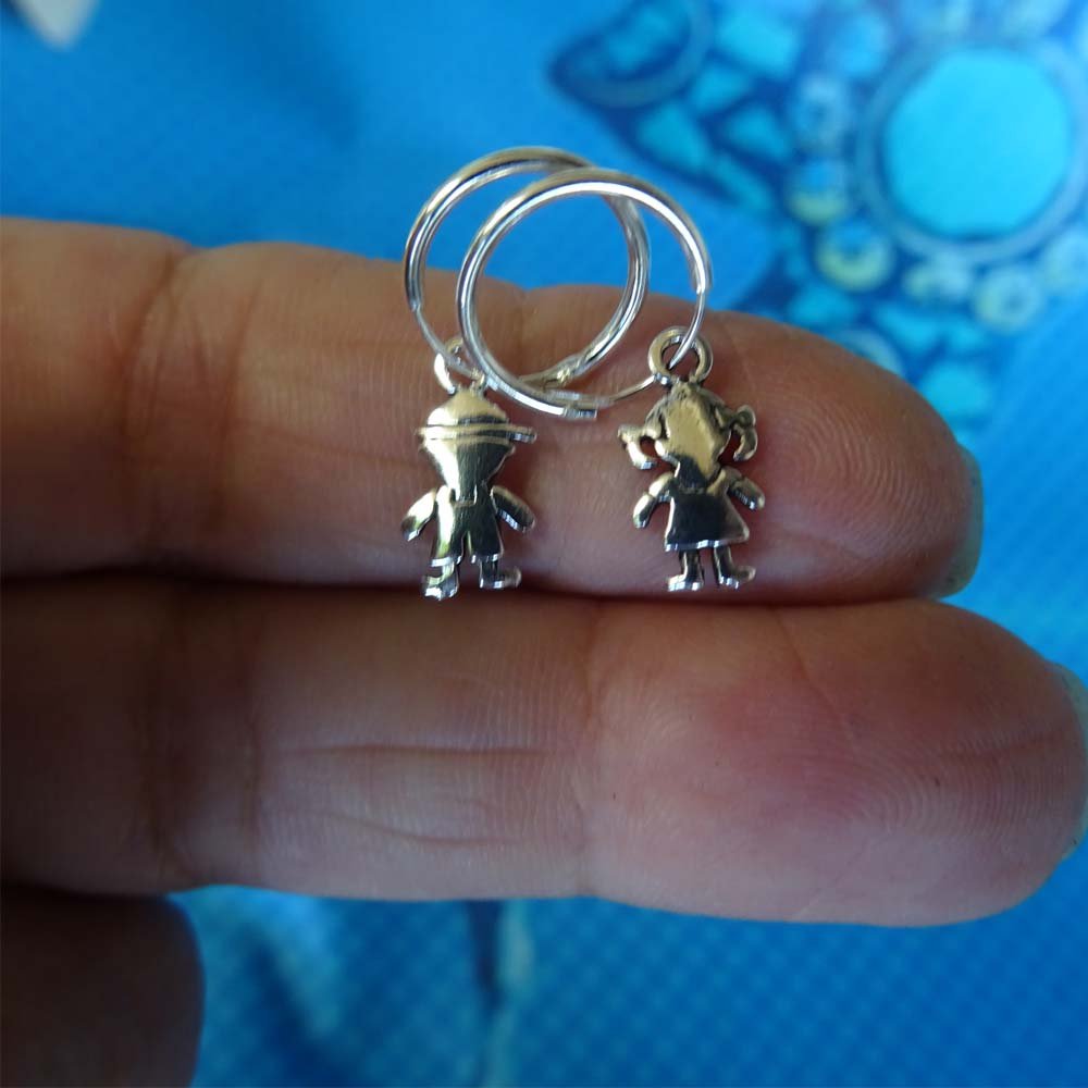 colgantito en forma de niño o niña montado en aro de 1.2 x12mm de diámetro.