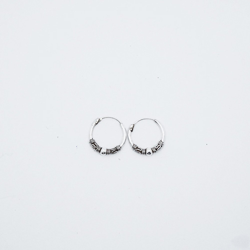 Arito estilo Bali con una pequeña bolita central y un hilo de plata enrollado a ambos lados.