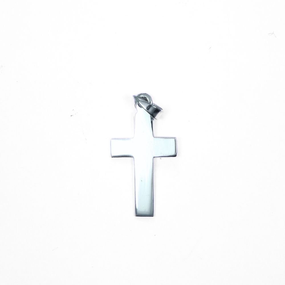 Colgante de plata en forma de cruz lisa.