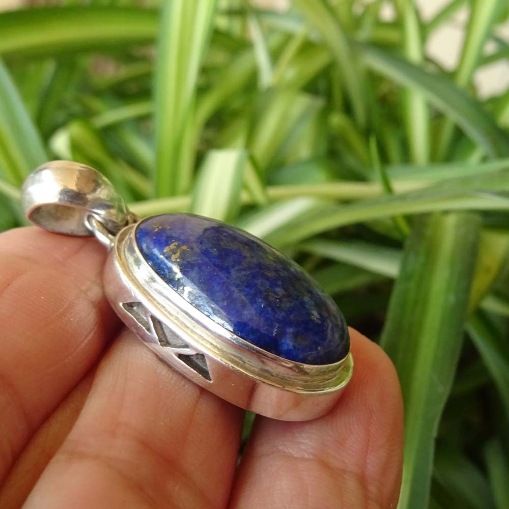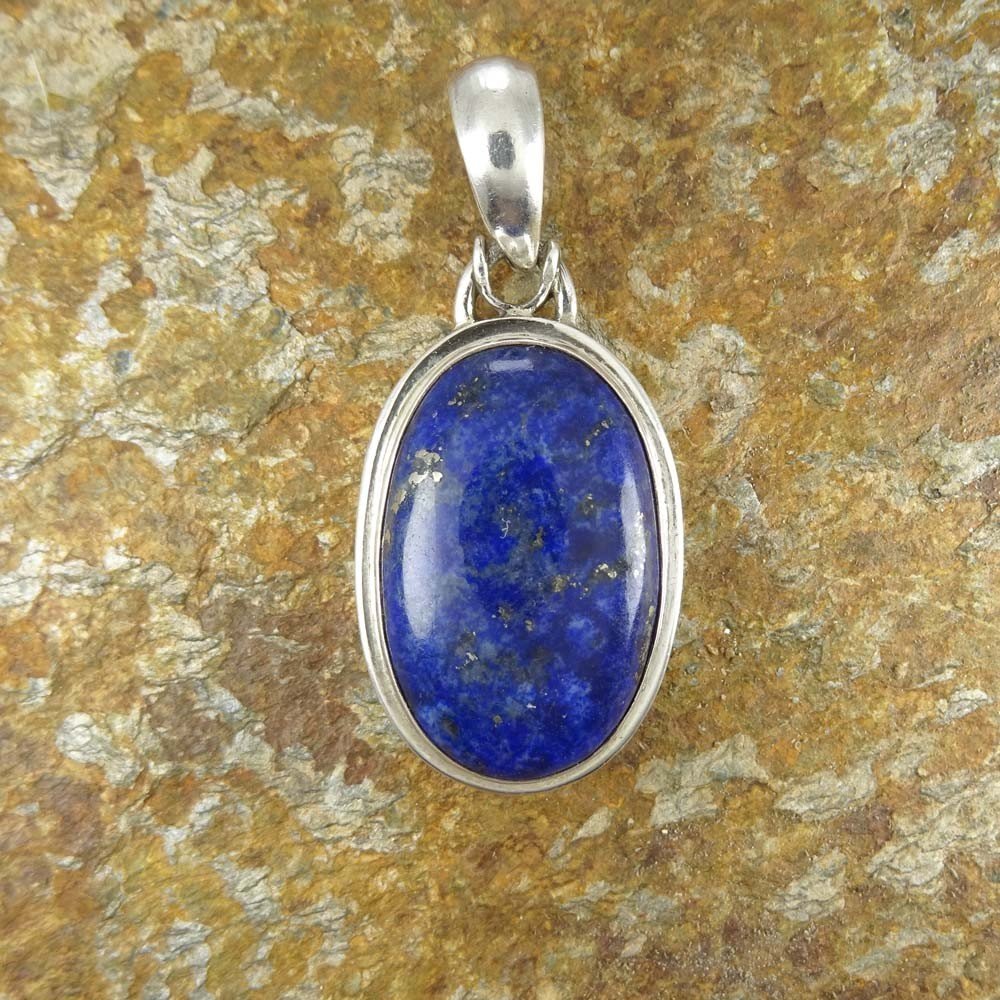 Colgante de piedra semipreciosa lapislázuli ovalada engarzada en plata.