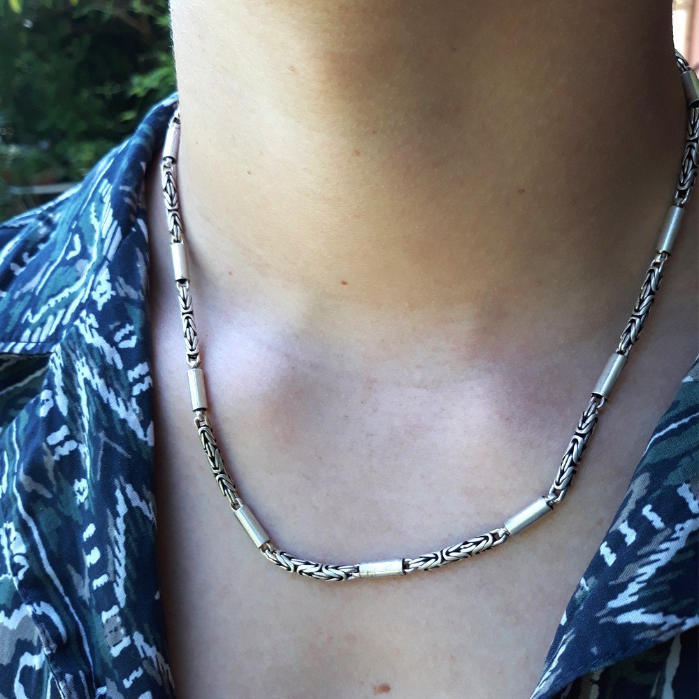 Cadena cordón eslabón entrelazado con tubitos lisos intercalados