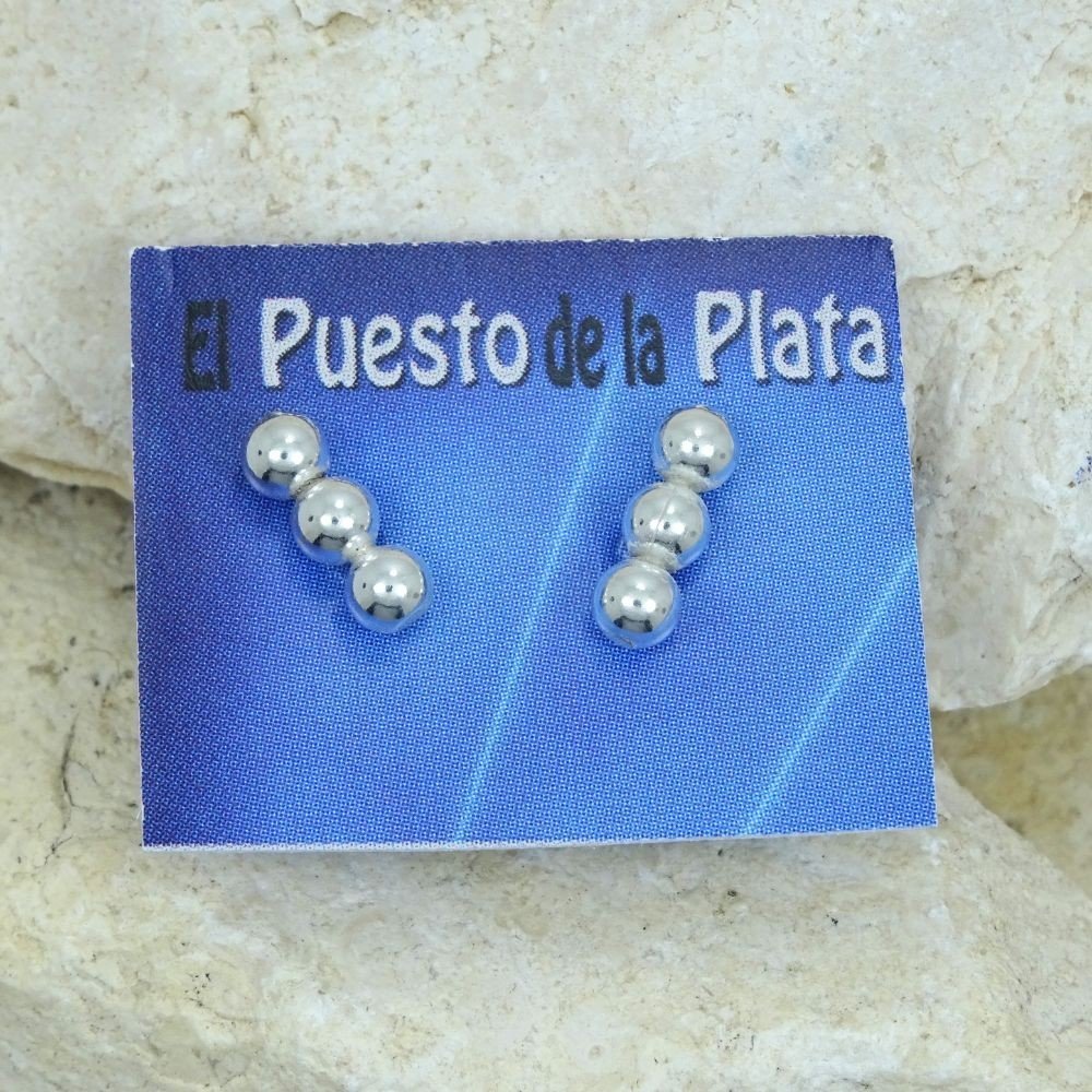 Pequeño pendiente de plata formado por tres bolitas en filas.