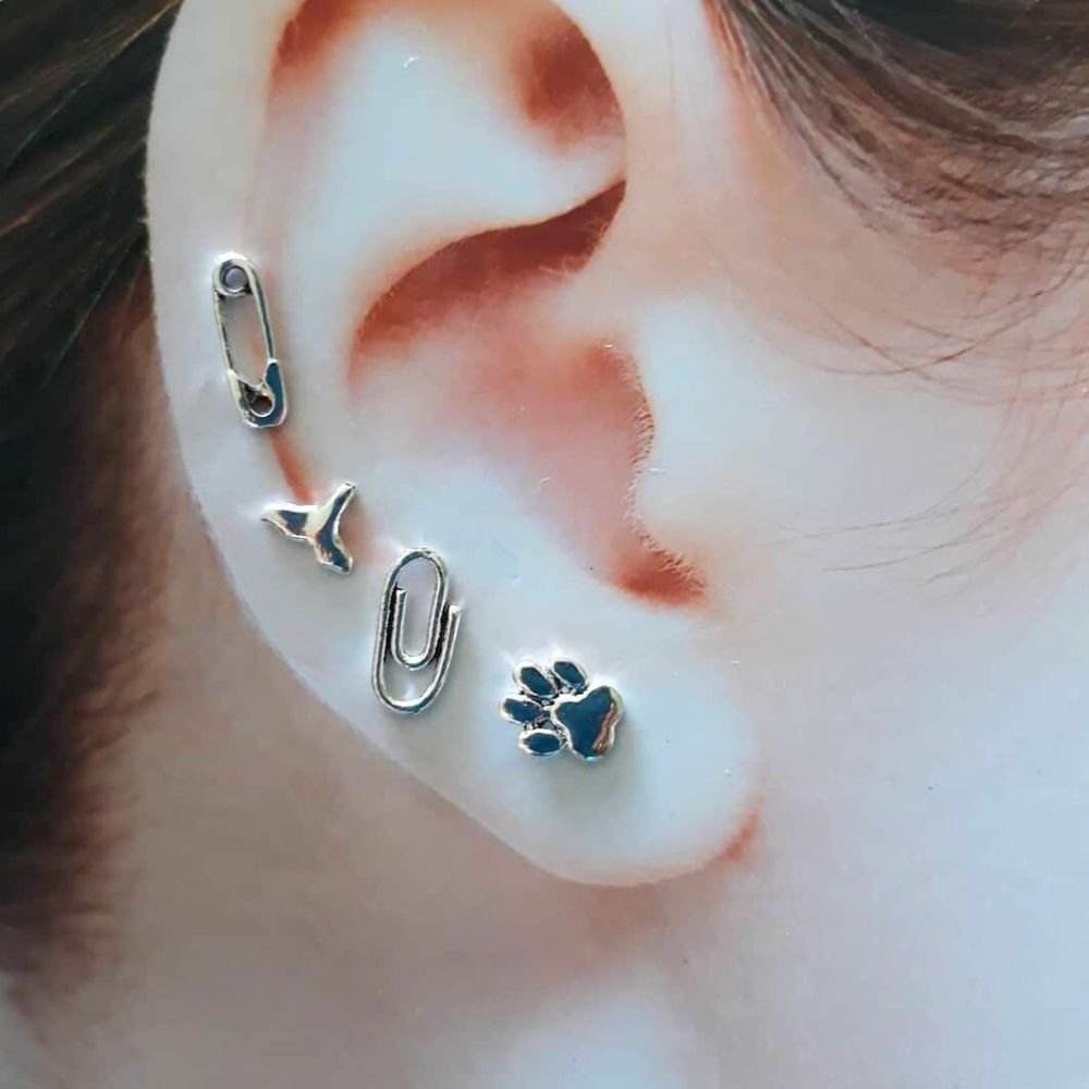 Pequeño pendiente con cierre a presión de una réplica en plata de un clip de papelería