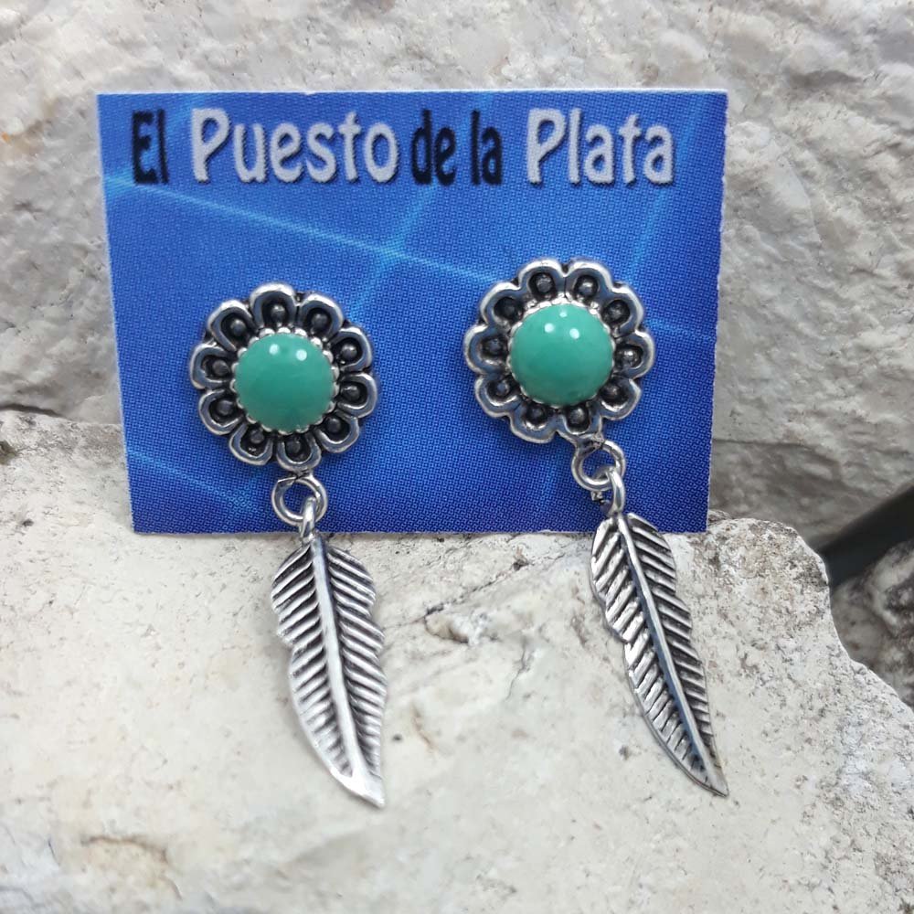 Pendiente  roseta y pluma MALEENYA