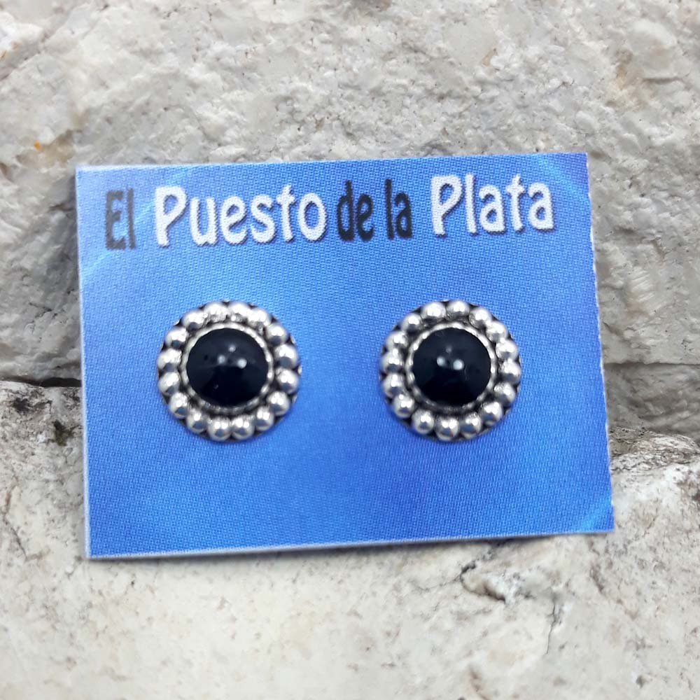 Pequeño pendiente con piedra rodeada de bolitas de plata con cierre a presión