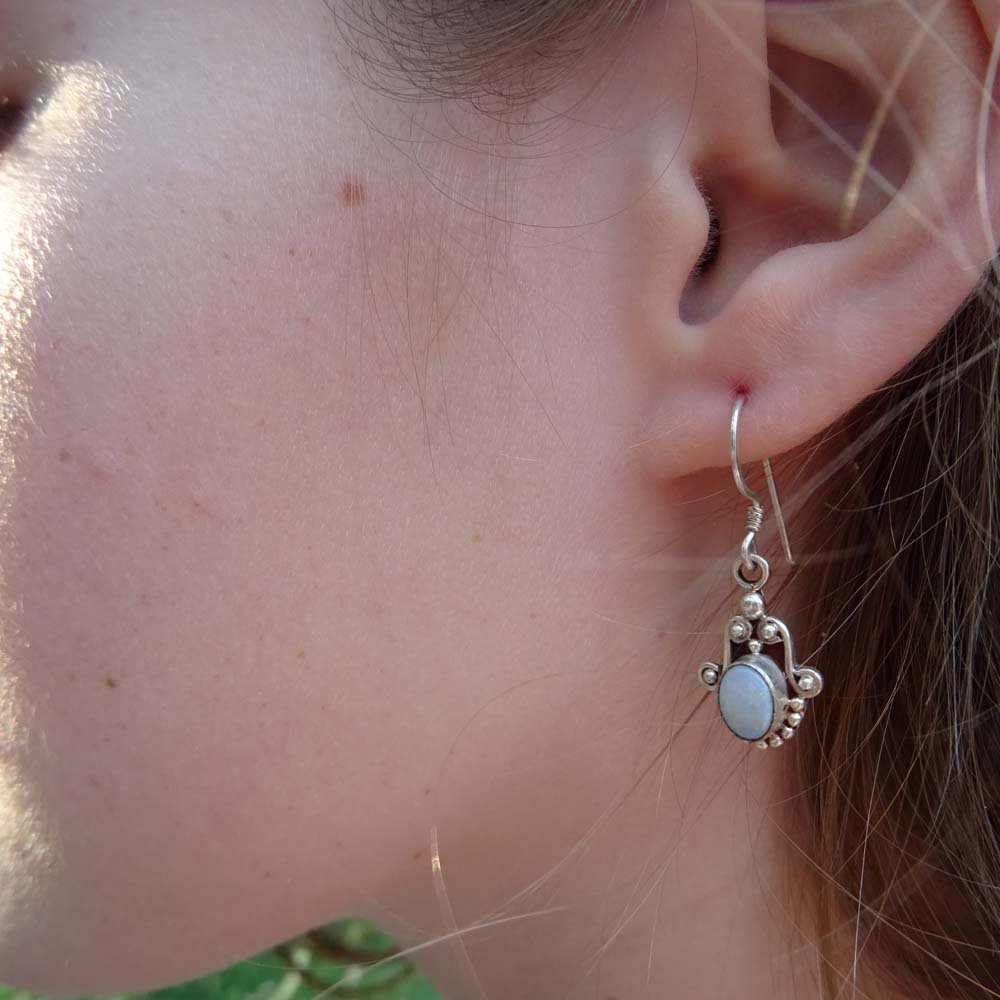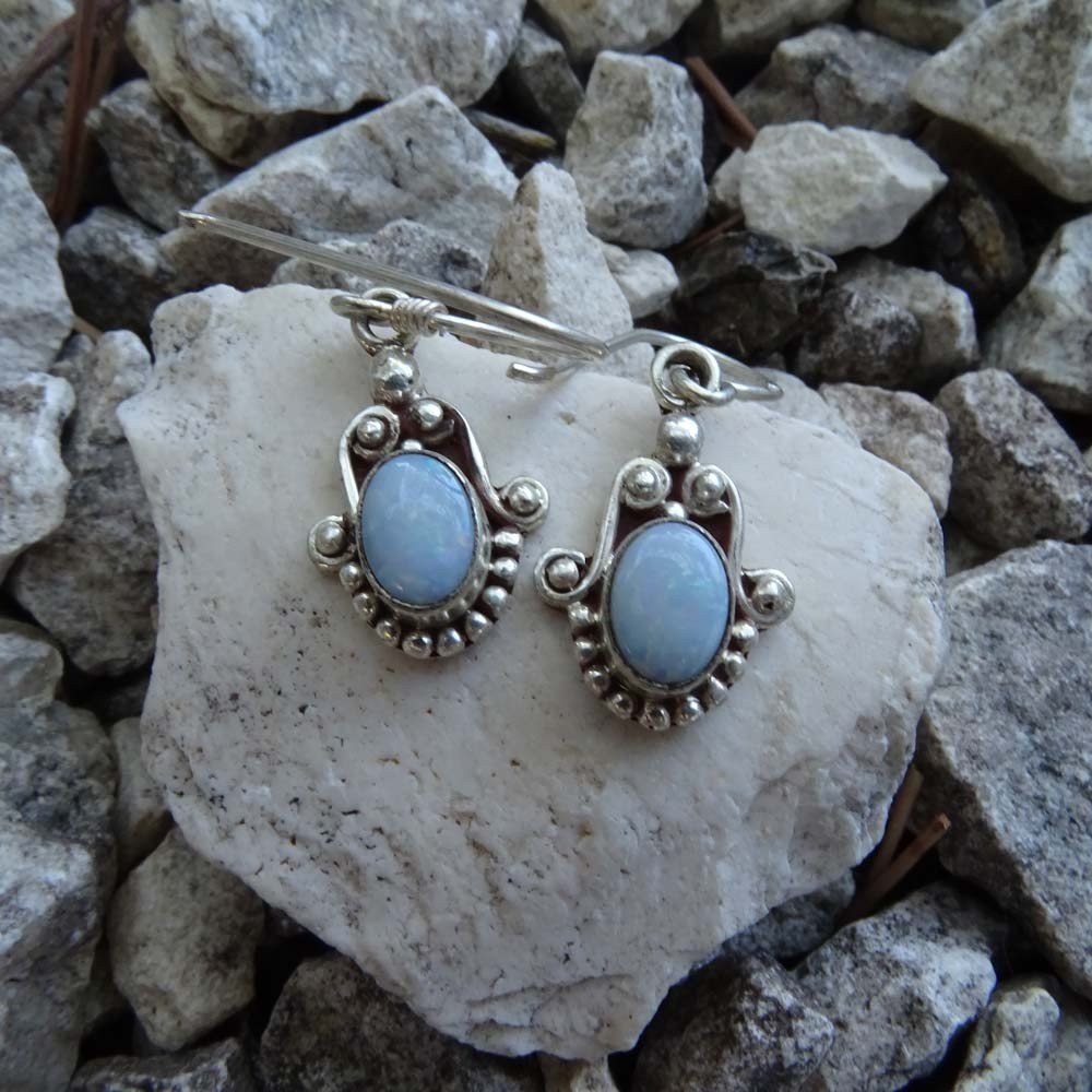 Pendiente de piedra ópalo blanco.